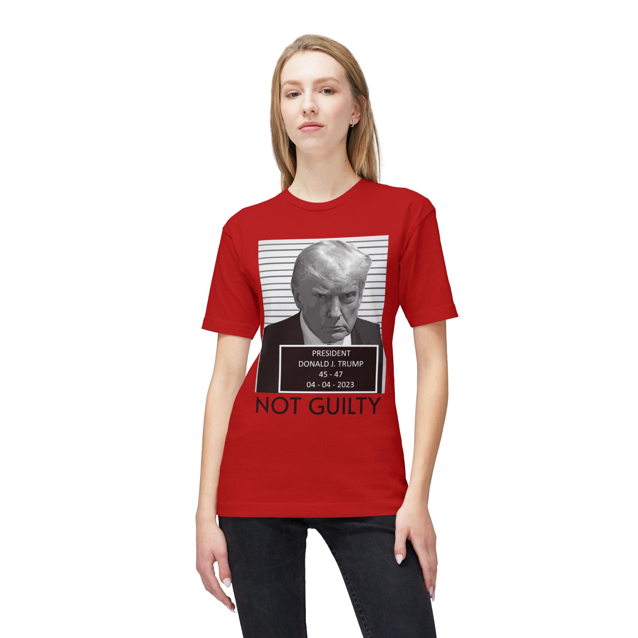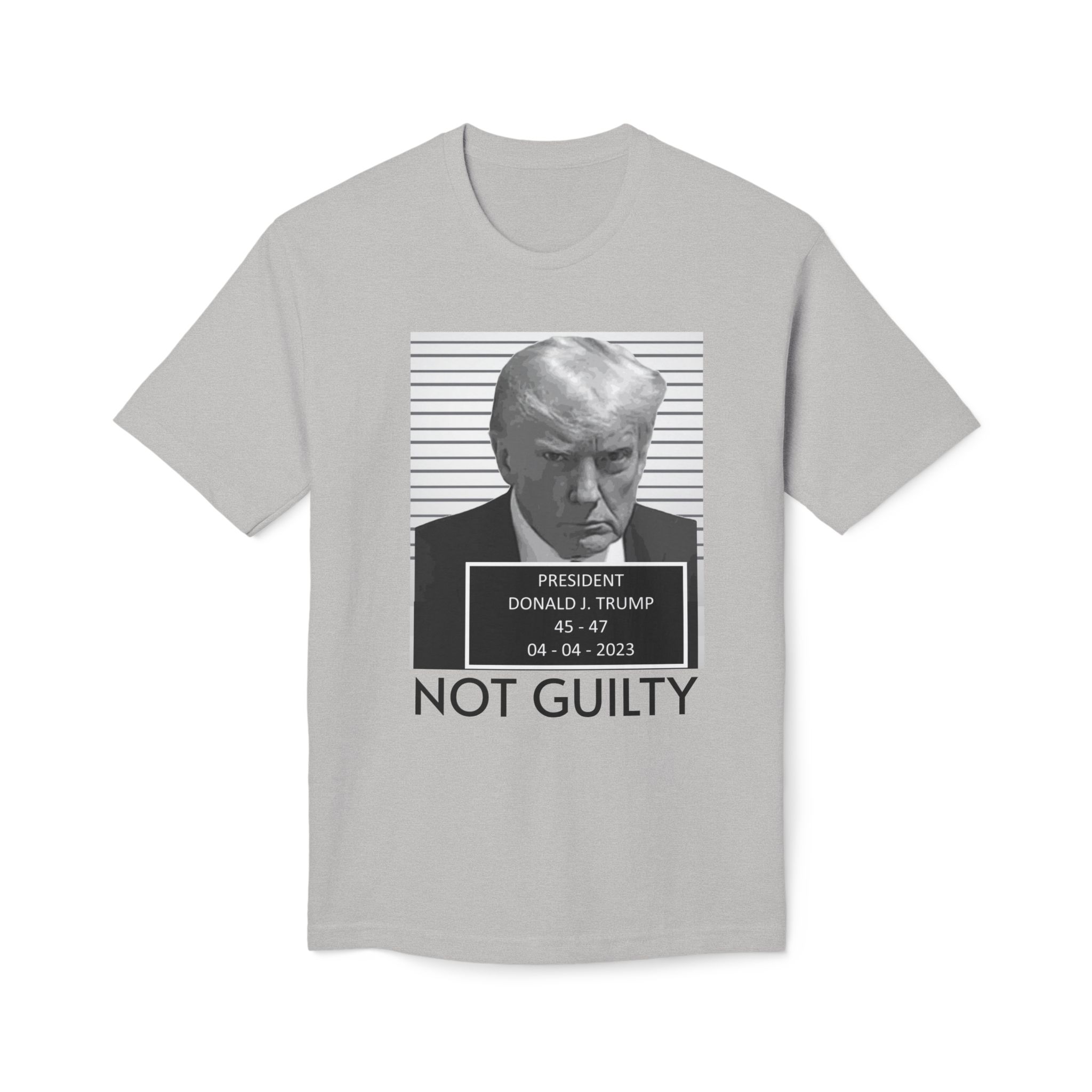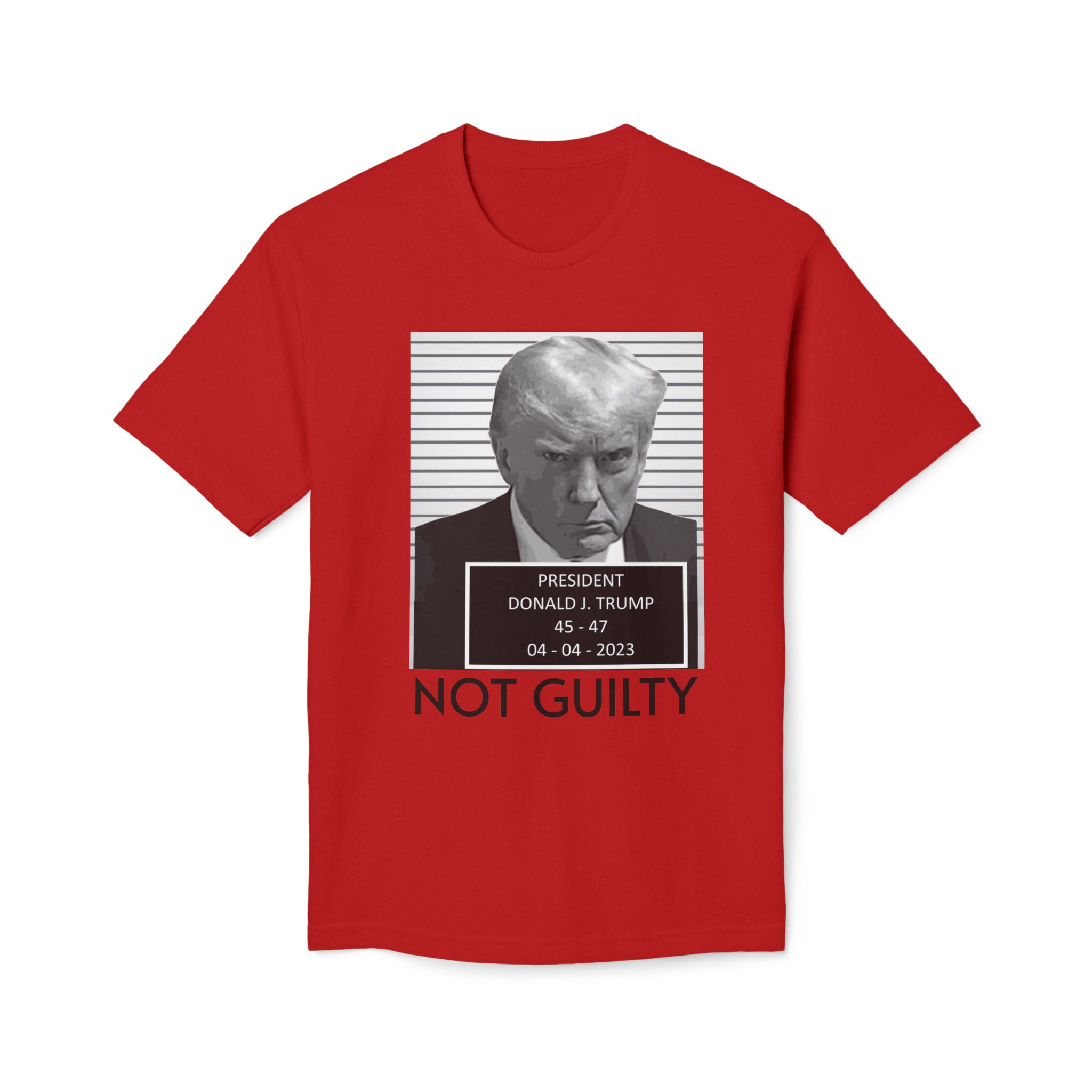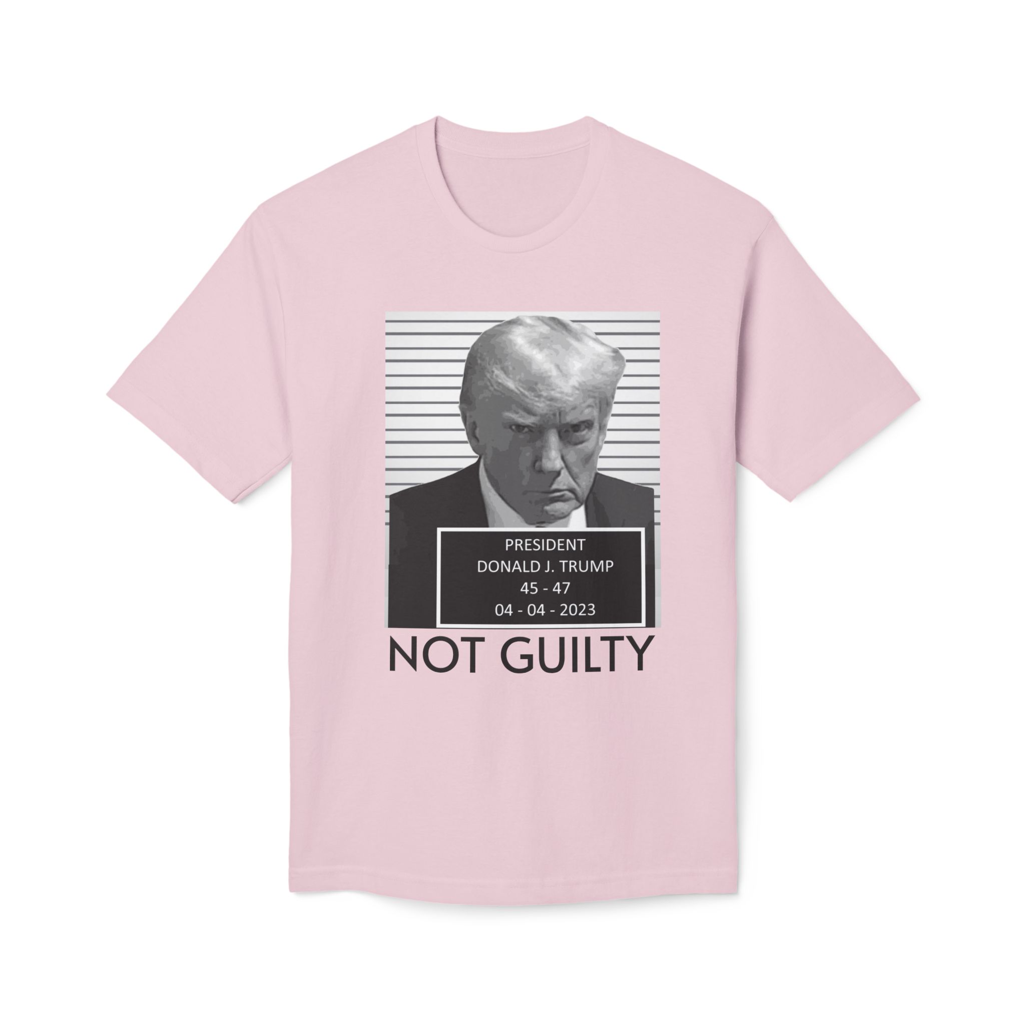 Donald J. Trump is NOT Guilty This t-shirt is unisex and features a 100% premium quality cotton composition that’s pre-shrunk to avoid further shrinkage even on multiple washes. The soft, open-end yarn ensures incredible softness to the touch, while the full-cut spec offers all-day comfort and a relaxed fit.
